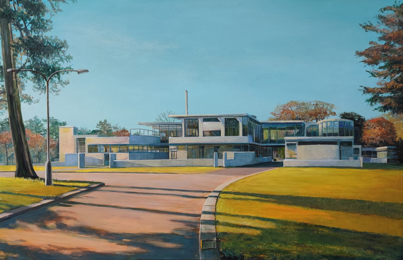 Het monumentale landgoed Zonnestraal in Hilversum bij laat middaglicht op een warme herfstdag.